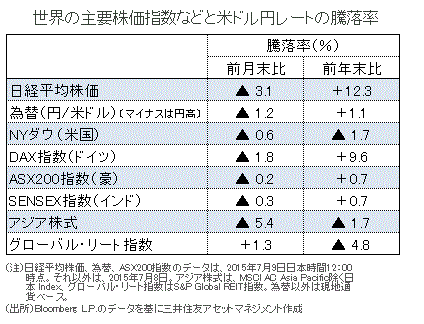 ■中国経済の世界経済への影響やギリシャ問題の進展については予断を許しませんが、中国当局の政策余地や主要国における金融緩和余地などを考慮すると、世界的な景気後退などは避けられそうです。日本株式市場を取り巻く好環境も変わりは無いと考えられます。日本株へのリスクとしては、米国の利上げが遅れる場合の円高進行などが考えられます。