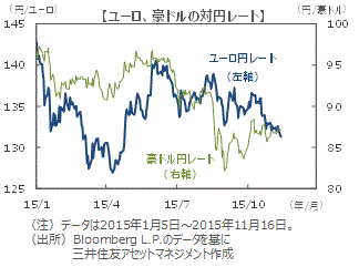 ■また、欧州への難民の問題にも微妙な影響がありそうです。難民への寛容過ぎる政策が世論の反発を強め、政治の不安定材料となることも予想されます。原油価格はいまのところ落ち着いていますが、地政学リスクで原油価格が上昇する場合の物価や金融政策への影響も注視する必要があると考えられます。