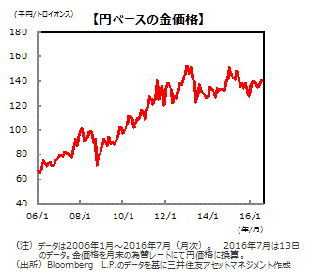 ■米国の利上げ期待の後退を受けて、ドル安が進行したことと、英国のEU(欧州連合)からの離脱選択により金融市場が不安定となったため、金の安全資産としての見直し機運が高まったためと思われます。英国の国民投票後の24日には、1日で約4.7%の上昇となりました。