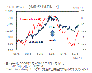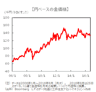 ■米国の利上げ期待の後退を受けて、ドル安が進行したことと、英国のEU(欧州連合)からの離脱選択により金融市場が不安定となる局面があったことなどから、金の安全資産としての見直し機運が高まったためと思われます。世界的な低金利の環境下、ETFによる金への投資需要が増加していることや、金の新規鉱山開発計画が乏しく、価格上昇にもかかわらず、生産が増えないという需給面も背景としてあげられます。