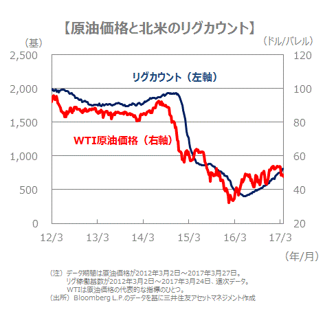 ■協調減産の合意を受け、原油価格はWTIで見て、16年12月に1バレル当たり50ドル台に乗せましたが、17年3月に同50ドルを割り込みました。