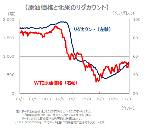 ■他方、価格がバレル当たり55ドル~60ドルを超えてくると、シェールオイルの生産が急拡大する公算があります。原油価格は、当面、同50ドル近傍で推移する見込みです。