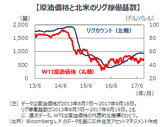 ■一方、原油価格が上昇すれば、それに4カ月ほど遅れてリグの稼働基数が増える傾向があり、これが原油価格の上値を抑える公算があります。以上から判断すると、原油価格は当面のところ、1バレル当たり40~50ドル程度で推移する見通しです。なお、9月上旬に米南東部を襲ったハリケーンの影響は、いまのところ限定的なものにとどまっているようです。