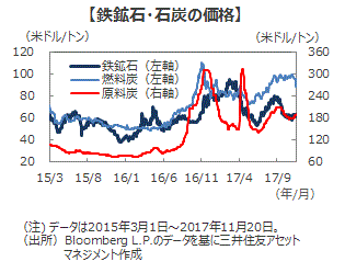 鉄鉱石・石炭の価格と豪ドルの動向(2017年11月)