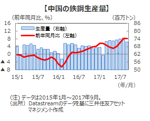 ■鉄鉱石、石炭の一大消費地である中国では、環境保護を目的として、政府が鉄鋼等の一部の工場に冬季の操業停止を命じています。このため、短期的には、鉄鉱石、原料炭の価格に低下圧力がかかる恐れがあります。