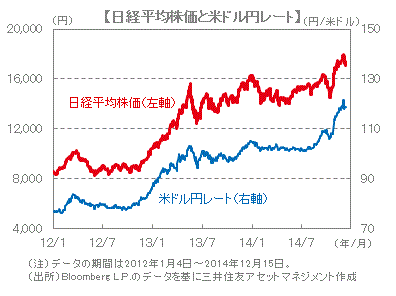 ■12月15日の日経平均株価は先週末比▲272.18円安の17,099.40円となりました。与党勝利の選挙結果はすでに株価に織り込まれていたと見られます。今日の日本株式市場の下落は、原油価格や欧米株式市場が下落したことが影響しました。15時現在の米ドル円レートは118.59円前後と先週末から大きな変化はうかがわれませんでした。