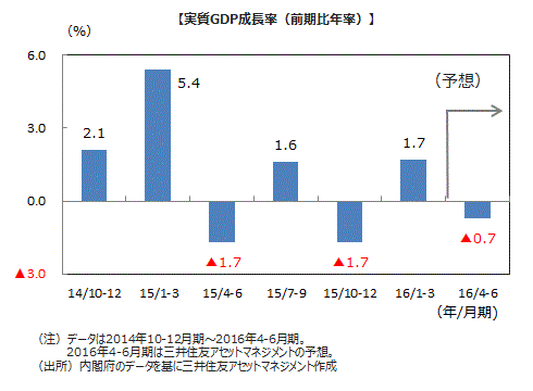 ■4-6月期は、熊本地震の影響を受けた生産活動や消費の停滞などから成長率は再びマイナスに転換すると予想しています。景気の持ち直しは7-9月期以降に後ずれする見込みです。