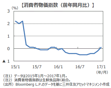 ■1月の消費者物価指数(生鮮食品を除く)は前年同月比+0.1%と、13カ月ぶりに上昇に転じました。ガソリン価格の上昇や被服及び履物の価格上昇が主因となりました。