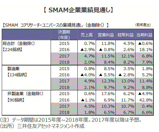 ■当社の集計(SMAMコアリサーチ・ユニバース224社( 金融除く)、6月時点)によれば、2016年度の経常利益は30.7兆円(前年度比+2.6%)の増益となり、3期連続の過去最高益更新となりました。