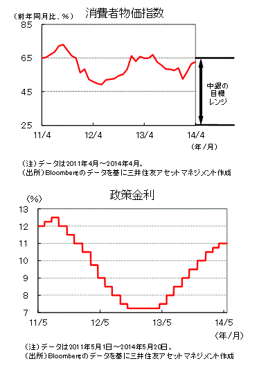 4月の消費者物価指数は前年同月比+6.28%と前月の同+6.15%から上昇し、中銀の物価目標レンジ(年+2.5%~+6.5%)の上限に近づきました。