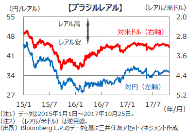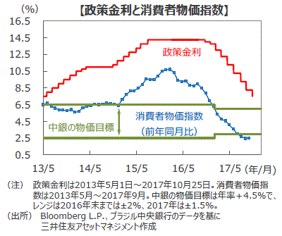 ■テメル大統領は、企業からの収賄を主導するなど組織的犯罪に関与した罪などで先月訴追されました。これにつき、議会下院で大統領を起訴すべきかの採決が行われました。これ以上の混乱を避けたいとの見方が優勢となり起訴は回避されたものの、今後もこうした政治リスクは残ると見られ、引き続き注視が必要です。