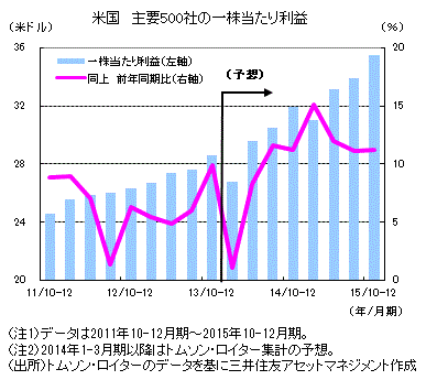 ●世界的な景気の持ち直しを背景に、増益率は2014年後半に再び二桁となる見込みです。リスク要因としてFRBの金融緩和策縮小による金利上昇や新興国不安などの事業への影響に引き続き注意が必要です。
