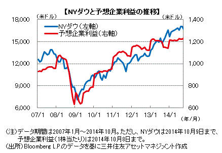 ■月末の次回FOMCではQEが終了する見込みですが、一方で欧州では金融緩和策が強化されつつあり、日本でも景気回復のもたつきに対し追加金融緩和策が期待されています。世界経済に対する不透明感が払しょくされるにつれて、株価は企業業績の回復に沿った展開に向かうと考えられます。