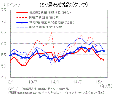 米国のISM景況感指数(2015年2月) 製造業で低下、非製造業で上昇【デイリー】