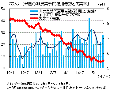米国の雇用統計(2015年5月) 雇用者数は大幅に増加、賃金の伸びは改善【デイリー】