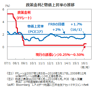 ■3月15日~16日の米連邦公開市場委員会(FOMC)は、市場の予想通り政策金利(FFレート)の誘導レンジを0.25%~0.50%で据え置くことを決定しました。