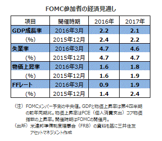 ■経済予測については、16年、17年の成長率、17年の物価上昇率が小幅に下方修正されました。政策金利の見通しも、前回の年内4回の利上げから2回の利上げに修正されました。