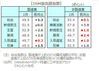 米国のISM景況感指数(2016年3月)製造業、非製造業とも上昇局面に入ったことを示唆