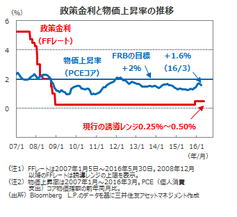 ■「米国の経済は改善を続けており、労働市場の改善と並行して、エネルギー価格の下落、ドル高といった一時的な要因が一巡すれば、物価上昇率は今後、数年間で目標の2%に到達する」見通しであることが、その理由です。