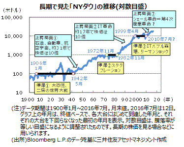 ■米国経済は緩やかな景気拡大が続く見通しです。こうした環境の中、産業構造の変化に注目が集まりそうです。過去も産業構造の変化が株式市場の長期上昇を支えました。今後は、ロボット化、人口知能(AI)の活用などといった新たな技術が産業構造の変革を促進すると期待され、上昇局面を支えると考えられます。