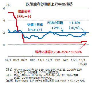 ■7月26日、27日に開催された米連邦公開市場委員会(FOMC)は、市場の予想通り政策金利(FFレート)の誘導レンジを0.25%~0.50%で据え置くことを決定しました。