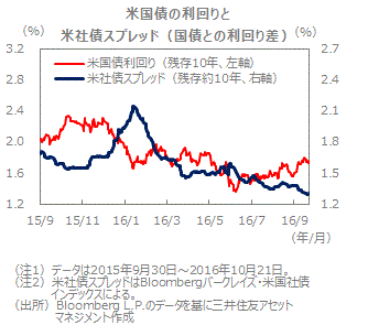 ■米社債スプレッド(国債と社債の利回り差)は、概ね縮小傾向にあります。供給は増えていますが、それ以上に需要が拡大していることを示すものです。