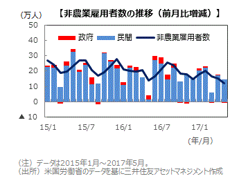 ホームマーケット日々のマーケットレポート堅調に推移する米国の雇用統計(2017年5月)賃金上昇率は緩やかで、利上げのペースも緩慢となろう/マーケット情報・レポート - 三井住友DSアセットマネジメント