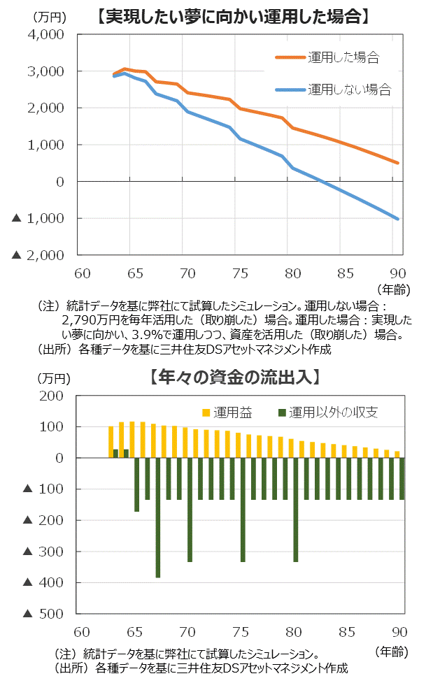 ■なお、取り崩し方については、自分で行う場合、毎年どの資産をどの程度売却する必要があるか等について、吟味した上で手続きを行う必要があります。これは大変な手間がかかります。また、それを高齢になっても継続することはかなり難しいことだと考えられます。