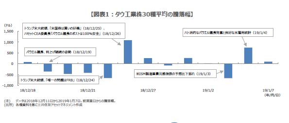 なお、ダウ工業株30種平均について、昨年12月のFOMCから足元までの推移をみると、パウエル議長やトランプ米大統領などの発言に反応し、価格が大きく上下に振れている様子がうかがえます(図表1)。ちょうどクリスマス休暇や年末年始の時期であったため、市場参加者が少なかったこともありますが、背景に「プログラム取引」の存在を指摘する声も聞かれます。