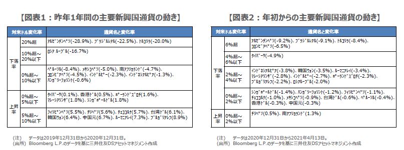 海外資本の依存度が高く、またコロナの感染が深刻な新興国の通貨が、昨年は顕著に下落した
