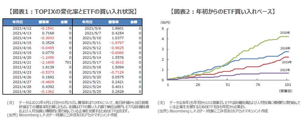 直近までのETF買い入れ動向をみると、従来の0.5%ルールは2%ルールに拡大された公算が大