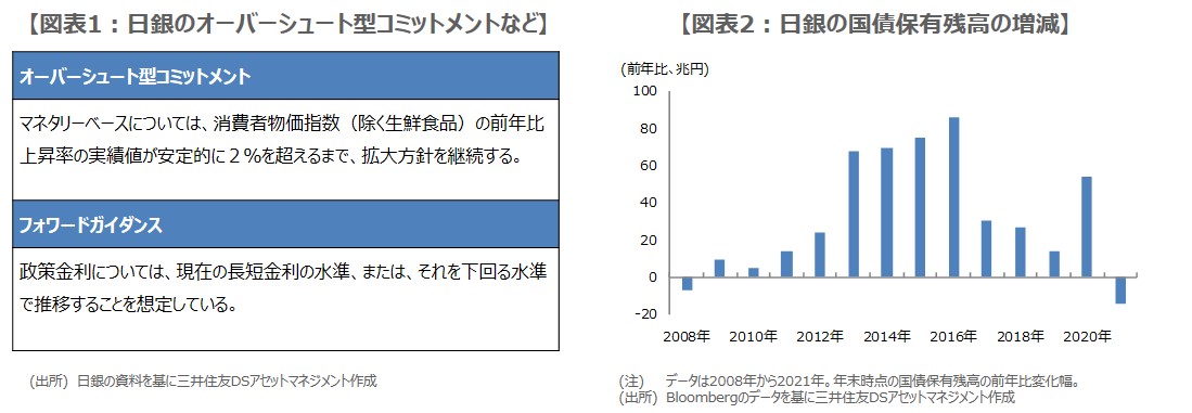 なお、日銀は長短金利の先行きに関する指針として、「現在の長短金利の水準、または、それを下回る水準で推移することを想定している」と声明文に明記しており、いわゆる「フォワードガイダンス」を設定しています(図表1)。ただ、前述の複数の関係者による指摘を踏まえると、日銀は理論的に、このフォワードガイダンスの文言を物価が安定的に2%を超える前に修正することが可能ということになります。