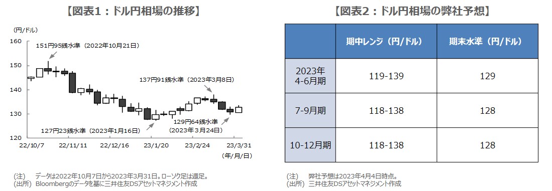 しかしながら、その後発表された米経済指標で、雇用の強さや予想を上回る物価の伸びが確認されると、米利上げの長期化観測が強まり、日銀も緩和継続の強い姿勢を示したことなどから、ドル円は再びドル高・円安方向に切り返し、3月8日には一時137円91銭水準をつけました。ただ、米国での銀行破綻を機に金融不安が広がると、3月24日には129円64銭水準まで押し戻されました。