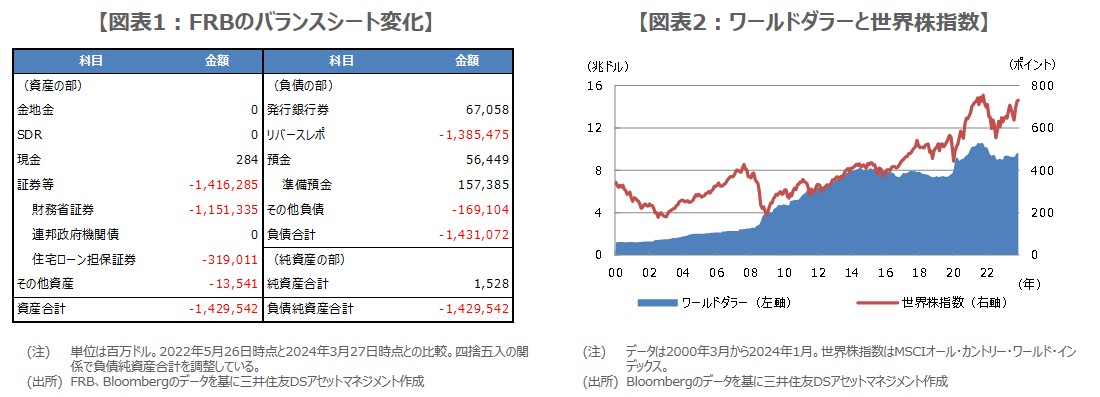 FRBのQTにより総資産残高は減少した一方で、過剰流動性の指標であるワールドダラーは増加