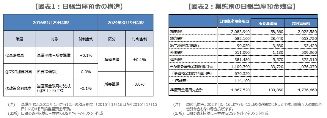 ●マイナス金利などの解除で日銀当座預金の3階層構造は廃止、現在は超過準備に0.1%付利。