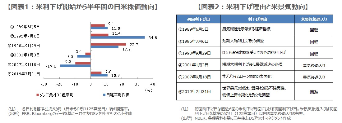 過去米利下げで必ずしも株高にならず、ただ利下げから半年間、日米株価は同方向に動く傾向