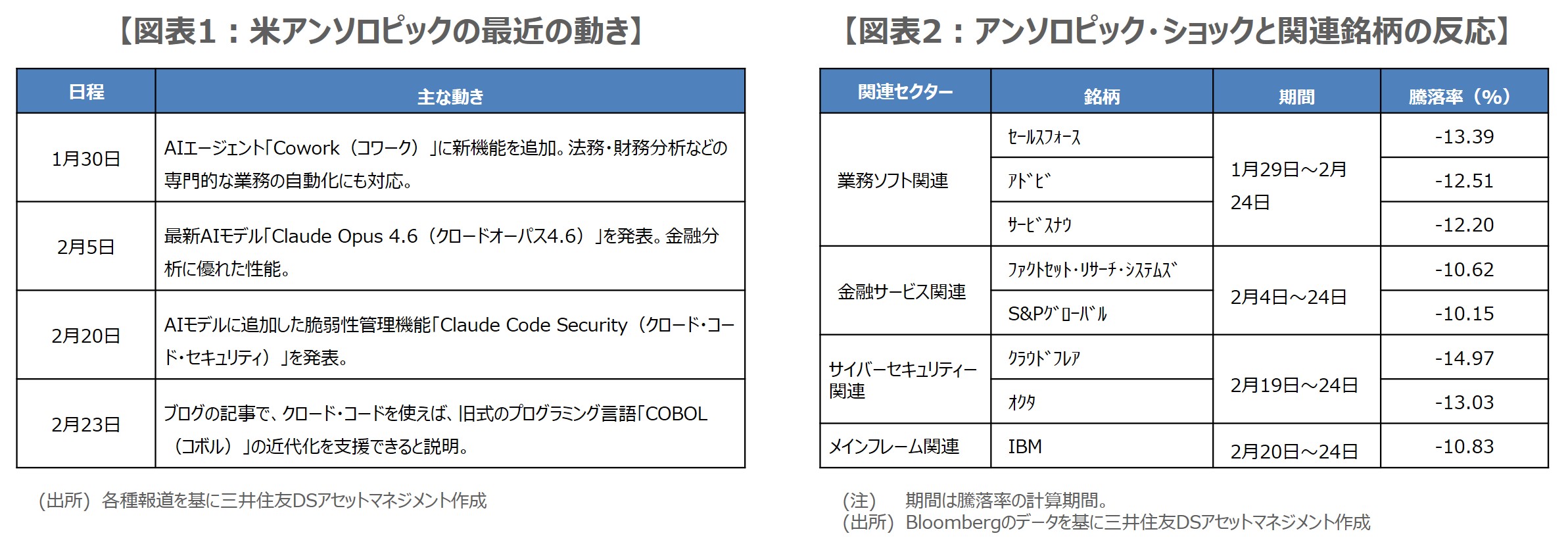 ●いわゆるアンソロピック・ショックにより関連銘柄が大きく下落、市場でSaaS崩壊論も広がる状況に。