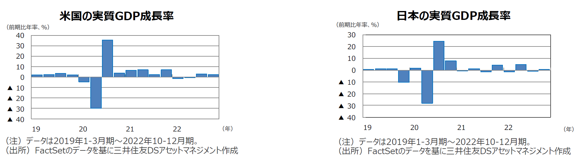 米国の10-12月期の実質GDP成長率は前期比年率+2.7%と、2四半期連続のプラス成長でした。高インフレの下でも個人消費が底堅く推移しました。