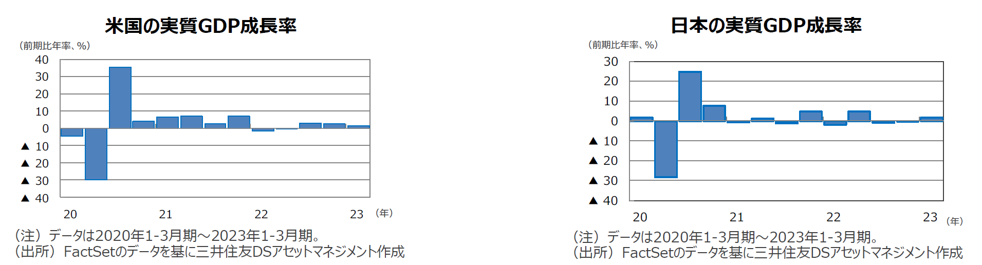 米国は、FRBによる大幅な利上げと金融不安に伴う融資厳格化で金融環境が引き締まり、企業業績が圧迫されるため、年後半に景気が悪化するとみられます。ただし、雇用が堅調なことから消費の腰折れは回避され、大幅なマイナス成長とはならない見通しです。