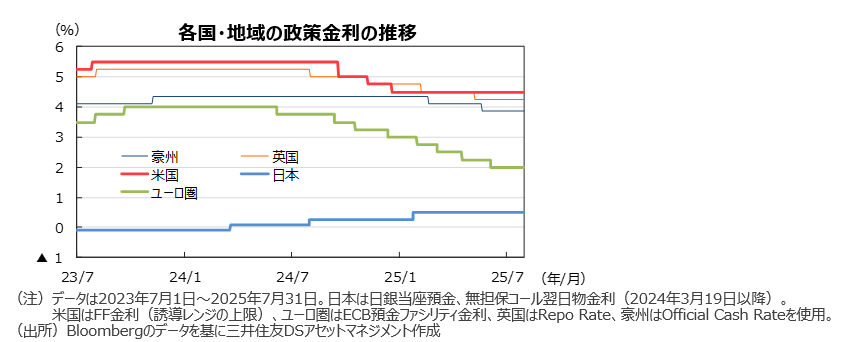 ●欧州では、米関税引き上げによる成長鈍化とインフレ率の安定は低下要因ですが、財政赤字の増加から長期金利の低下余地は限定的とみます。