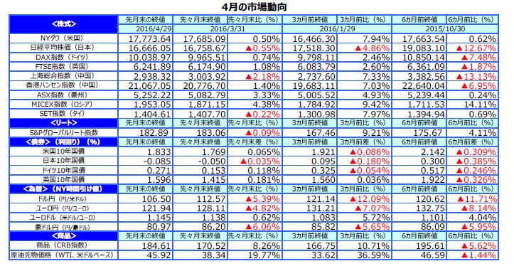 先月のマーケットの振り返り(2016年4月)【マンスリー】