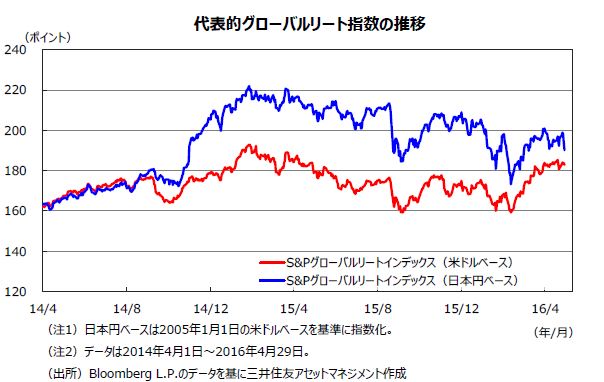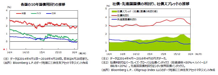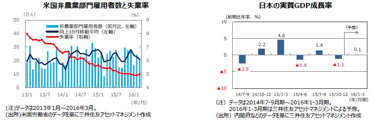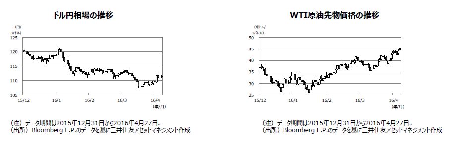 米国企業の前年比増益率がプラスに転じる時期は、原油安の影響の長期化などから2016年7-9月期と見込まれており、以後は堅調な推移が予想されます。日本の主要企業の2016年度の経常利益は、+2%台半ば(QUICK集計、4月28日時点)と見込まれています。日本株式市場にとっては、米国景気の足取りが確かなものとなることに加え、ドル安・円高の流れが落ち着くことも重要です。日米ともに原油など資源価格の下落や新興国経済の減速による業績予想の下方修正などから、株式市場の変動が大きくなる可能性には引き続き注意が必要と見られます。
