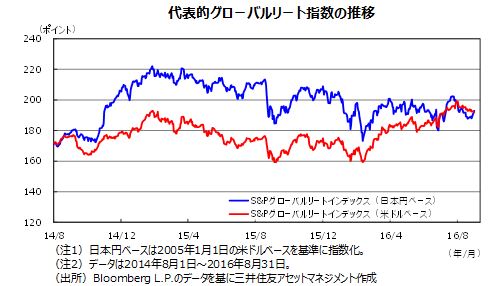 | リート | 米連邦準備制度理事会(FRB)は9月にも追加の利上げに踏み切る可能性があります。ただ、景気拡大と物価上昇は緩やかとみられ、国債利回りの上昇も緩やかなものにとどまる見込みです。また、米国経済の安定性が増せば、新興国からの資本流出などの懸念も後退し、世界経済にとって好影響を与えそうです。また、欧州中央銀行(ECB)やイングランド銀行(BOE)、日銀は9月に追加緩和に踏み切る可能性が高まっています。長期金利が低下すればリート市場にはプラス要因となります。当面、各国のリート市場は底堅い展開が予想されます。 |
