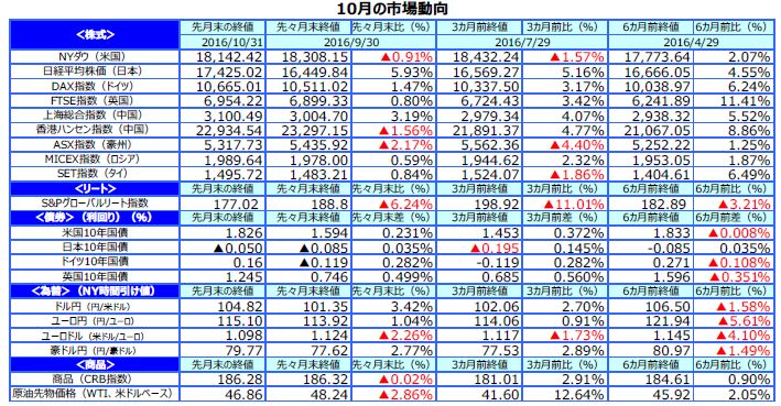 先月のマーケットの振り返り(2016年10月)【マンスリー】