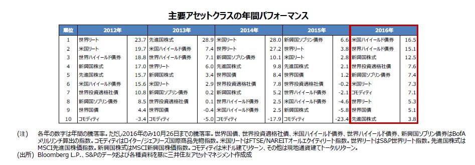 (2)年初の原油安や年央の英国民投票などで金融市場が動揺しても、成績良好なアセットクラスがあります。