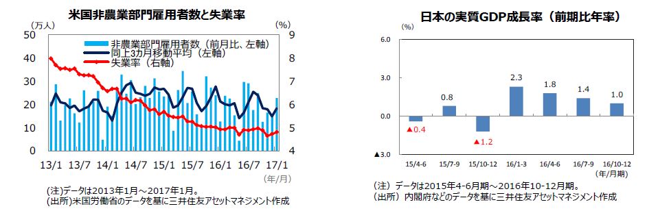 米国は、個人消費の安定した拡大により緩やかな成長を維持する見込みです。トランプ大統領の景気対策は17年10-12月期から始動見通しです。