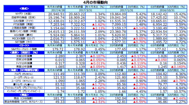 先月のマーケットの振り返り(2017年4月)【マンスリー】