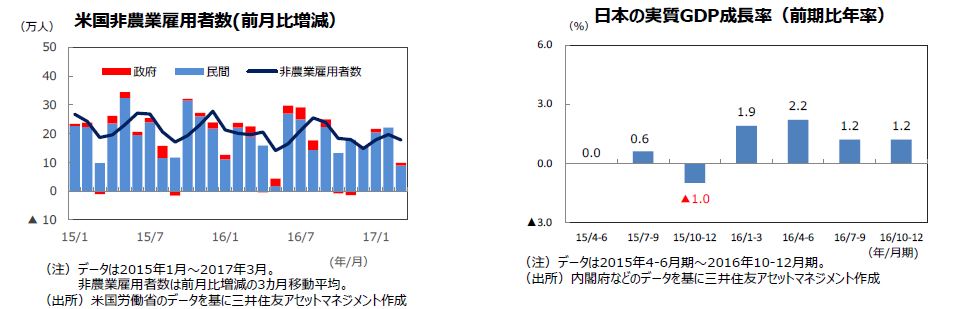 米国は、個人消費の安定した拡大により緩やかな成長を維持する見込みです。トランプ大統領の景気対策は17年10-12月期から始動見通しです。