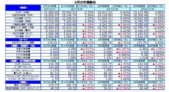 ホームマーケット週次・月次市場情報先月のマーケットの振り返り(2017年5月)【マンスリー】/マーケット情報・レポート - 三井住友DSアセットマネジメント