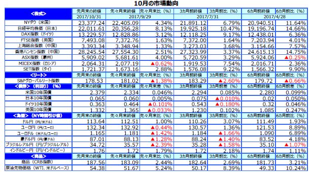先月のマーケットの振り返り(2017年10月)【マンスリー】